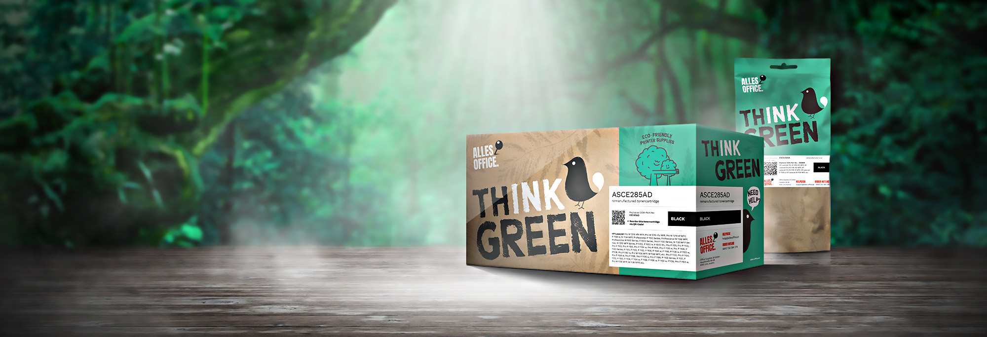 Nachhaltig, regional & unabhängig. Wir machen den Unterschied.  Mit den Tinten- und Toner-Innovationen von Think Green sparen Sie im Vergleich zum Originalprodukt massig Geld und geben gleichzeitig unserer Natur etwas zurück. Lesen Sie mehr über unsere Mission.