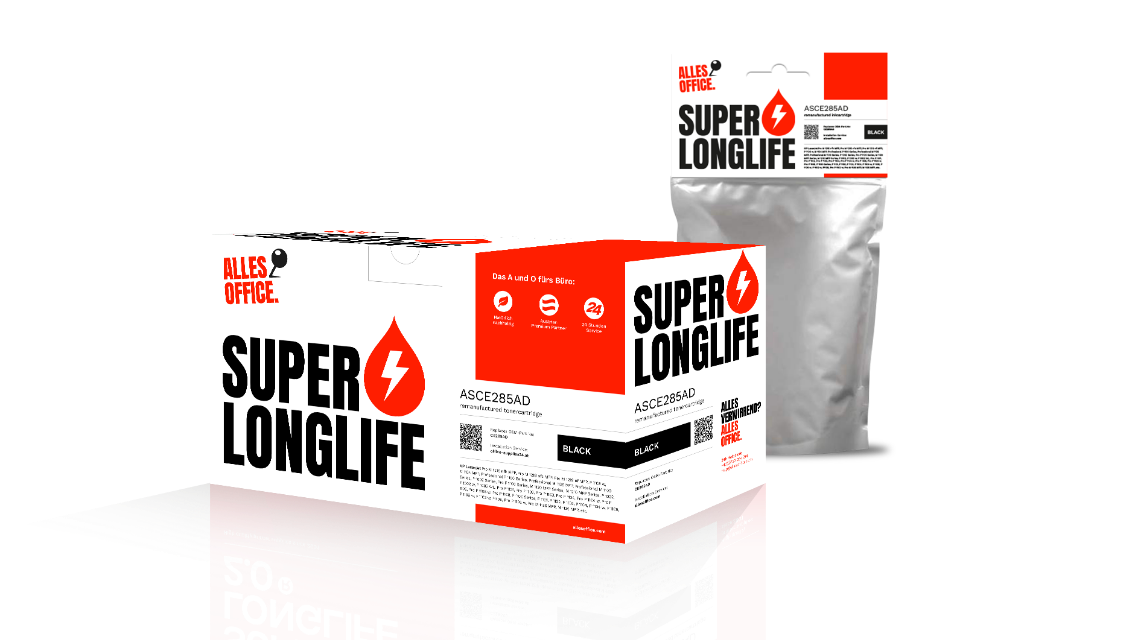 Die Produkte von Super Longlife machen in jeder Office-Disziplin eine gute Figur – aber vor allem auf der Langstrecke wissen sie zu überzeugen. 80% mehr Seitenleistung als das Original, bei niedrigeren Kosten und 2 Jahren Garantie. Das ist eine Ansage!